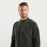 Collo alto arricciato, insieme ai polsi e al fondo rifiniti a coste inglesi.