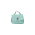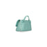 Postina in pelle martellata acquamarina, con fodera e tasca interna e doppia chiusura.