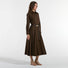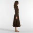 Il motivo di tagli e spicchi sulla gonna disegnano la silhouette mentra la cintura abbinata evidenzia il punto vita.