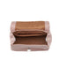 Postina in pelle martellata beige, con fodera e tasca interna e doppia chiusura.